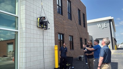 Our collaboration with HausBots began last summer following a live demonstration at our Northbrook headquarters and laboratories. During the visit, HausBots showcased its climbing crawler technology to WJE staff, including a field deployment on tall bridge piers that we previously evaluated for the Chicago Skyway.